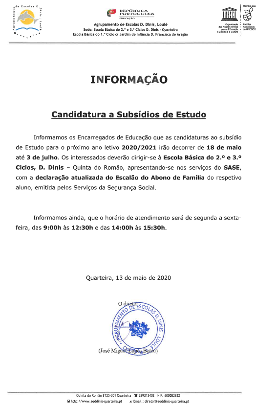 Comunicado caso de COVID-19 - EB1/JI D. Francisca de Aragão
